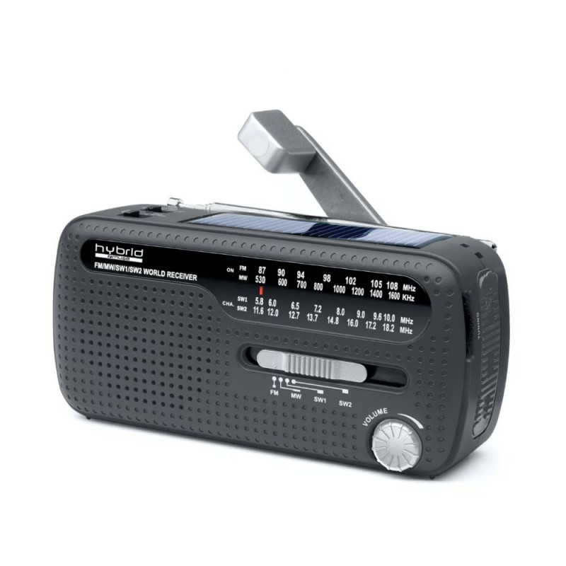 | Muud funktsioonid | Dynamo and Solar power supply. Emergency Siren and Alert blinking light. Flashlight with 3 Ultra Bright LED. Cell Phone, MP3 player Charging Jack |
