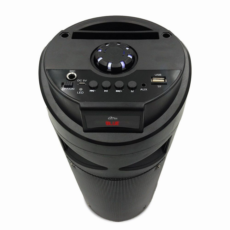 Funktsioonid Kompaktne Bluetooth stereokõlar Sisseehitatud KARAOKE funktsioon Bluetooth 4.2 + EDR koos A2DP, AVRCP FM-raadio automaatse skaneerimisega 87,6-108MHz Mp3 mängija Toetab micro SD-mälukaarte ja USB-mäluseadmeid Helitugevuse reguleerimine Ekvalaiser AUX pesa Mikrofoni pesa suur pesa 6,3mm IR kaugjuhtimispult Toiteallikaks on USB/mikro-USB 5V kaabel Sisseehitatud liitiumaku kuni 4 tundi mängimist Värvilise valguse valgustus Väljundvõimsus: RMS 30W, PMPO 750W 2x4" draiverid Sagedusreaktsioon: 100 ~ 20000 Hz LED-ekraan Kõlari mõõdud: 163x400mm Kaal: 1,42 kg Mikrofon ei kuulu komplekti