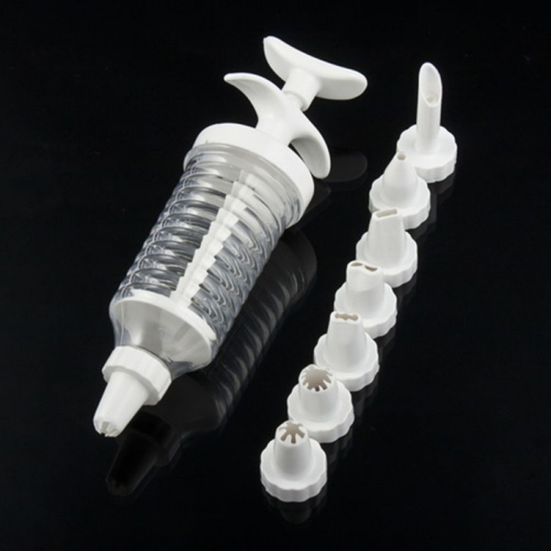 Dekoratiivsete tortide ja küpsiste süstlaga + 8 otsikut. Selle abil saate kaunilt kaunistada kooke ja taldrikuid, millel serveerite toite.