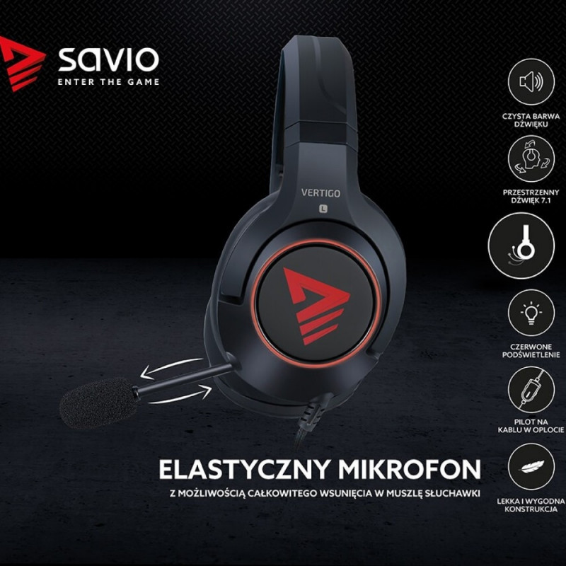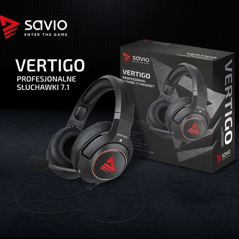 Gamingu kõrvaklapid 7.1 virtuaalse ümbritseva heliga SAVIO VERTIGO USB