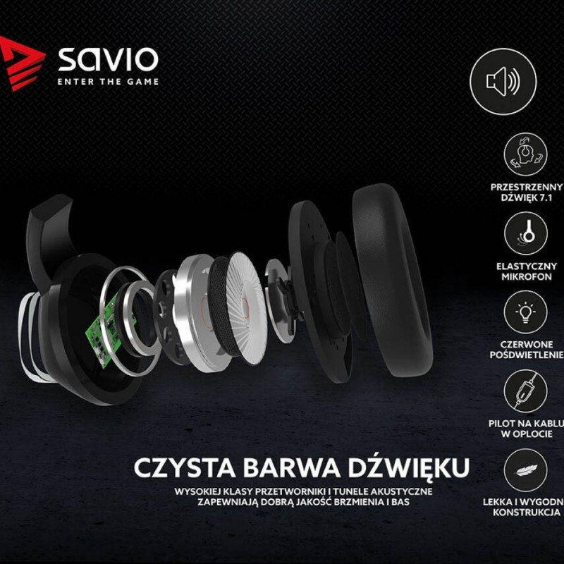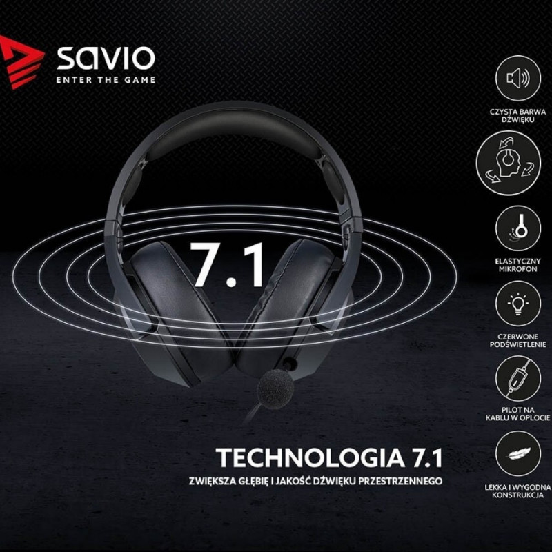 Kasutatav 7.1 virtuaalse ümbritseva heli tehnoloogia võimaldab heli suunda uskumatult täpselt määrata. Kõrvaklapid töötavad plug & play põhimõttel ja neid juhitakse lihtsa ja intuitiivse kaabliga kaugjuhtimispuldi abil. Kogu kaabel on punutud, mis pikendab selle eluiga, ja kasutatav USB-liides võimaldab neid ühendada mitte ainult sülearvuti või arvutiga, vaid ka TV BOX SAVIO GOLD-iga.