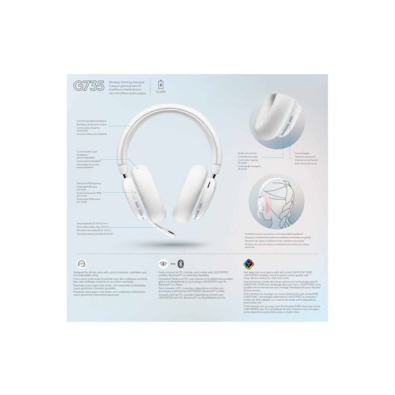 LOGITECH G G735 Headset full size Bluetooth / LIGHTSPEED wireless 3.5 mm jack white mist