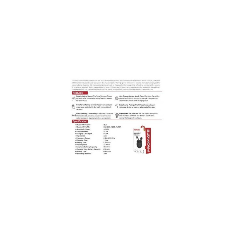 PROMATE Charisma 2 TWS Bluetooth Stereo Headset