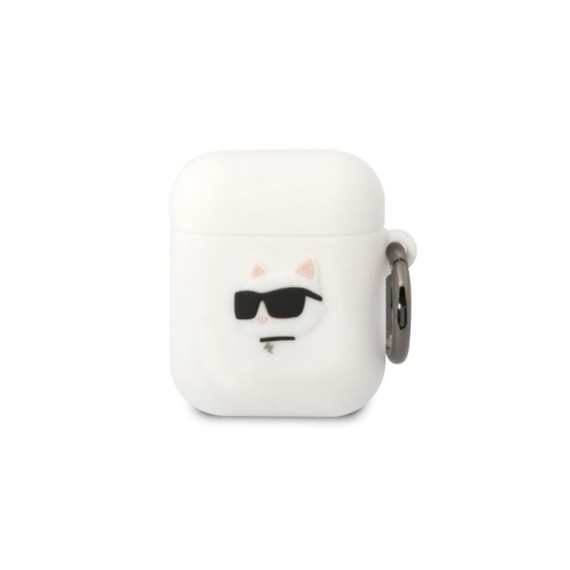 Maci austim Karl Lagerfeld Apple Airpods 1/2 3D Logo NFT Choupette Head Silicone Case White