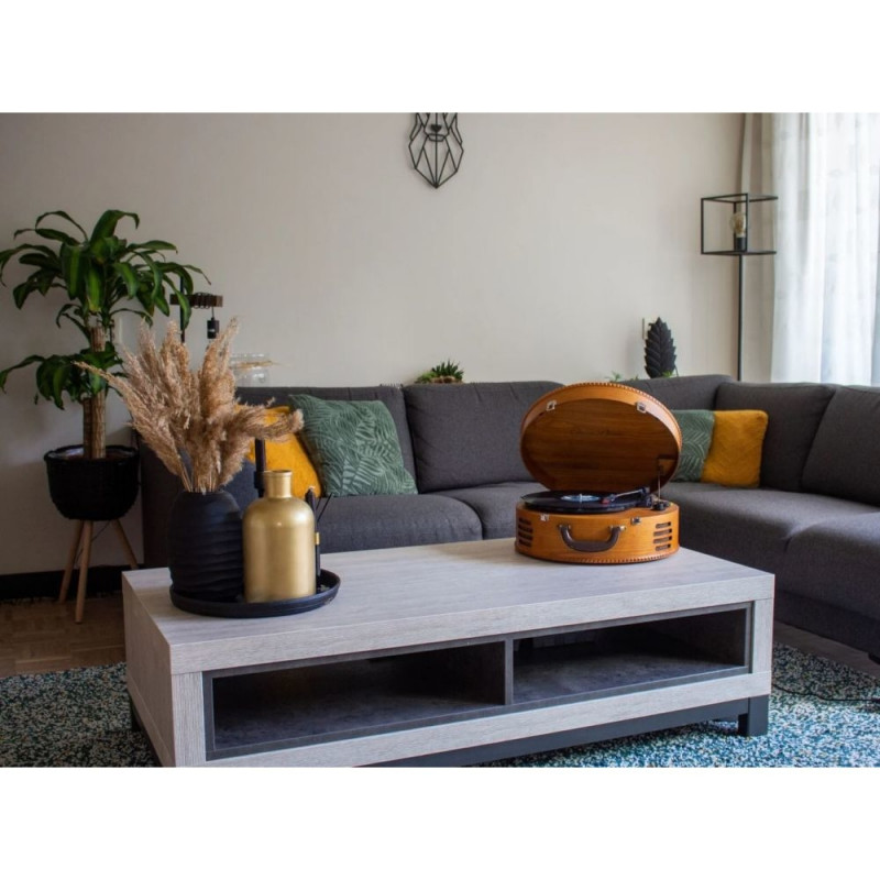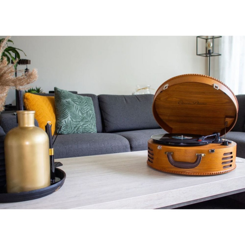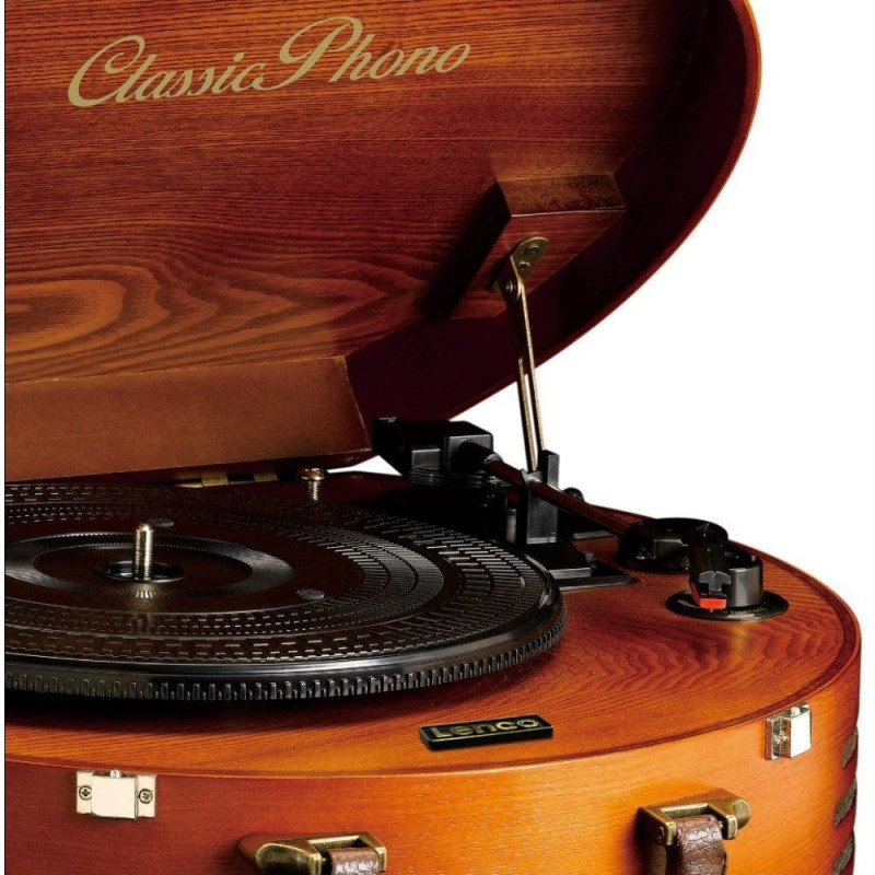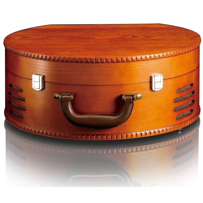 Kuna plaadimängijat kaitseb stiilne ja käepärane puidust ümmargune ümbris, saab seda endaga kõikjale kaasa võtta.