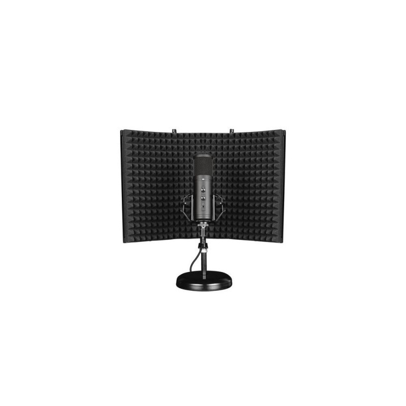 <b>Studio-quality audio</b><br>From making podcasts to documentaries, from singing pop songs to your magnum opus; you’ll need a great microphone to capture the audio in the best possible quality. The Trust GXT 259 Rudox, with its large reflection shield, zero-latency monitoring and cardioid audio pattern, gives you everything you need to start recording studio-quality audio.<br><br><b>For Content Creators</b><br>The Trust GXT 259 Rudox is made for every type of content creator. Thanks to the cardioid pattern, background noise is reduced, which makes this microphone suitable for podcasts, voice-overs or livestreams. Sing your own songs and play acoustic instruments and the Rudox will record every sound you make in the highest possible quality.<br><br><b>Reflection Shield</b><br>By placing the reflection shield behind the microphone, echoes are reduced, making this the ultimate studio set-up for anyone that wants high-quality voice recordings. The panels of the reflection shield can be adjusted to your liking, as the entire unit stands firmly on the heavy metal base with integrated shock mount. You’ll easily create a full sound studio in your room.<br><br><b>Connections</b><br>Thanks to the USB connection, audio is recorded in full digital quality. There’s no need for an external mixer; all you need is a PC or laptop with a free USB port. Monitoring your voice is made easy with the integrated headphone jack that provides zero-latency audio monitoring. The moment you say it, you’ll hear it. Combine this with the mix control and mute buttons and you’ve got full control over your studio recordings.Trust GXT 259 Rudox. Type: Studio microphone, Microphone sensitivity: 70 dB, Microphone frequency: 18 - 21000 Hz. Connectivity technology: Wired, Device interface: USB, Maximum operating distance: 1.8 m. Product colour: Black, Mounting type: Table, Country of origin: China. Power source: USB. Width: 5 mm, Depth: 5 mm, Height: 19 mm