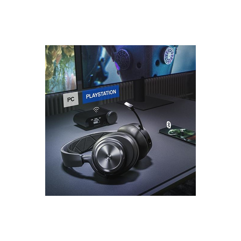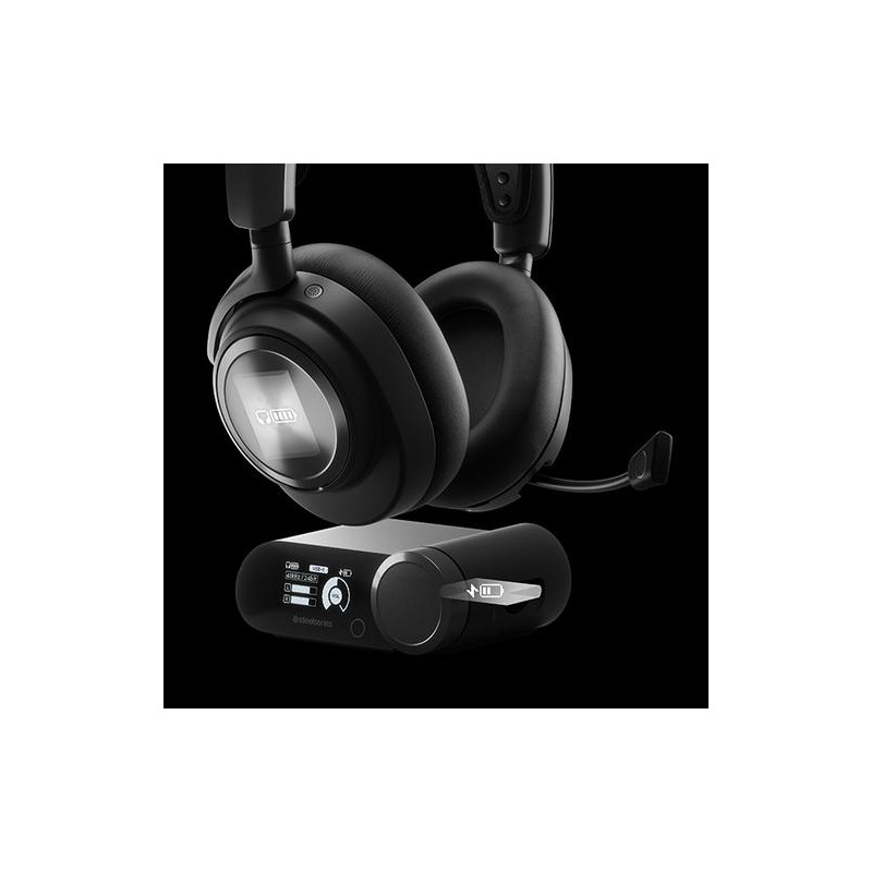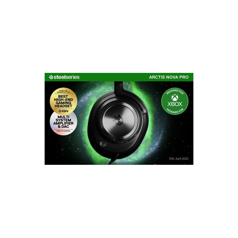 <b>Almighty Audio</b><br>Hear game audio like you never have before. Transport yourself to another world of immersive gaming. Almighty Audio is here.<br><br><b>Nova Pro<br>Acoustic System</b><br>Ultimate clarity and sound quality come together in the Nova Pro Acoustic System, raising the bar for what audio in gaming means. Our audio engineers pushed the envelope for legendary performance with Premium High Fidelity Drivers, achieving sound purity unlike any other gaming headset.<br><br>Lose yourself in the soundscape with 360° Spatial Audio and take what's already awesome to the next level with SteelSeries Sonar Audio Software Suite.<br><br>Take total control of every sonic element with magical precision, highlighting every critical step, reload, or vocal, utilizing the Pro-grade Parametric EQ, a first in gaming.<br><br><b>Active Noise Cancellation for Gaming</b><br>Fully immerse yourself with Active Noise Cancellation, removing outside noise with an advanced 4-mic hybrid system.<br><br>Transparency Mode is just a button press away with adjustable hear-through levels to suit your situation.<br><br><b>Multi-System Connect</b><br>The Arctis Nova Pro Wireless for Xbox streamlines your entertainment, allowing quick swapping between two USB-wired systems.<br><br><b>Infinity Power System</b><br>Gaming, unchained. Stay in the action with 2 hot-swap batteries, charging the second while you use the first. Almighty Audio never stops.<br><br><b>EQ Settings</b><br>Easily configure the sound profile on the fly with a 10-band equalizer, from bass to treble, without leaving your game.<br><br><b>Chat Mix</b><br>The Wireless Base Station allows you to strike the perfect balance between game sound and teammate chat, finding the optimal settings for victory.<br><br><b>Multi-System</b><br>The perfect fit for your multi-system lifestyle, jump between console or PC with the flick of a switch.<br><br><b>AI Noise Cancelling Microphone</b><br>Stand out with crystal clear comms as AI-powered noise cancelling software purifies your sound.<br>The broadcast-quality bidirectional microphone reduces noise by 25dB on any platform and blends seamlessly into the earcup when fully retracted.<br>The mic works in tandem with Sonar Software's AI algorithms to silence background noise, cutting out keyboard tapping and button-mashing.Steelseries Arctis Nova Pro Wireless Xbox. Product type: Headset. Connectivity technology: Wired & Wireless, Bluetooth. Recommended usage: Gaming. Headphone frequency: 10 - 40000 Hz. Wireless range: 12 m. Cable length: 1.2 m, Product colour: Black