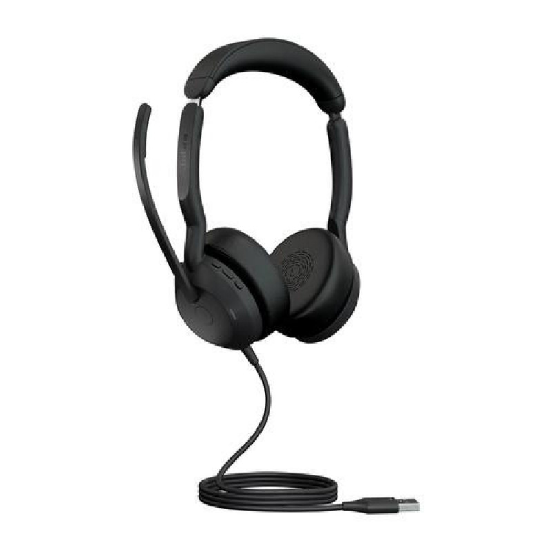 <b>Jabra Evolve2 50</b><br><b>Totally wired.</b><br>Professional headset that’s wired up and ready to go.<br><br><b>INTRODUCING EVOLVE2 50</b><br><b>Fit for every purpose</b><br><br>Professional calls from your spare bedroom. Motivational playlists before a big pitch. Meditative sounds when it's time to focus. Hybrid work days have a lot going on, so it’s important your headset can keep up.<br><br>Evolve2 50 is specially engineered to go with your flow. It’s ready to work whichever way you do, delivering professional sound to your calls and your music, with powerful stereo and mono Active Noise Cancellation (ANC), noise-cancelling mics, and 28mm custom speakers - all while treating your head to out-of-this-world comfort with our revolutionary Jabra Air Comfort technology.<br><br><b>Do it all, with a headset designed to do it all</b><br><br><b>OUT-OF-THIS-WORLD COMFORT</b><br><b>There’s something in the air…</b><br>Our engineers spent years perfecting the game-changing Jabra Air Comfort technology to create this incredible out-of-this-world comfort.<br><br>Layers of ultra-soft perforated foam inside the cushioned headband stop pressure building up, for a dreamy, light-as-air fit no matter how long you wear it.<br><br>Flexible, ergonomic earcups take the feel-good factor even further. They rotate to move whenever you do, so you’re free to focus on your day without your headset getting in the way.<br><br><b>ACTIVE NOISE CANCELLATION</b><br><b>It’s oh-so-quiet</b><br>We’ve all had one of those days. A buzzer-happy delivery driver arriving mid-conference call. The kids screeching about snacks just as you’re about to seal the deal. Your dog barking in the background of that crucial client chat.<br>Enter Evolve2 50.<br><br>Its powerful Active Noise Cancellation (ANC) has a novelty acoustic chamber design and a specially-designed chipset, plus 2 premium noise-cancelling microphones, to effectively silence your surroundings. So you can get on with making hybrid work, work for you.<br><br><b>Hear what you want, the way you want.</b> Evolve2 50 delivers Active Noise Cancellation in both mono and stereo styles - so you can be sure all the words in your ear sound just right, whichever style you prefer.<br><br><b>Mic position matters.</b> The novelty acoustic chamber has the feedback microphone facing away from the headset speaker and sitting closer to the ear canal, helping it to hear everything in your environment exactly the same way you do, which means you get powerful noise-cancelling accuracy that’s uniquely honed to your surroundings. We’d call that a mic drop moment.<br><br><b>MICROPHONE TECHNOLOGY</b><br><b>We hear you</b><br>Bright ideas. Words of wisdom. Crucial comments. Whatever you’ve got to say, Evolve2 50 makes sure you sound professional when you say it. A clever chipset powers its speech-separating, noise-cancelling algorithm, and 2 premium microphones, to effectively filter out background distractions. So whoever you’re talking to hears you – and only you – as clearly as if you’re sitting next to them.<br><br><b>MULTI-PURPOSE</b><br><b>All work and all play</b><br>Evolve2 50 does it all, a bit like you. Stay work-ready with efficiency-boosting tech and a busylight to protect your focus.<br><br>Taking a moment to recharge between meetings? Immerse yourself in optimized music and media with rich full sound from 28mm custom speakers. Looking for the next flight to Copenhagen (or just the quickest route home)? Tap to hear all the answers from your chosen voice assistant. With Evolve2 50 you’re ready for anything.<br><br><b>FLEXIBLE & FAST SETUP</b><br><b>Hit the ground running</b><br>We know your time is valuable, so we’ve made Evolve2 50 easy and lightning-fast to use. Just plug it into your computer and you’re instantly good to go. And with dual connectivity, you can use Bluetooth® to connect to a second device - like your phone - at the same time. Which means you can listen to music on one and take calls on the other. Now you’ll never have to choose between picking up and losing your place just as the chorus hits. When setup is this simple, you can stress less and do more.<br><br><b>UC-CERTIFIED</b><br><b>As flexible as you are</b><br>Evolve2 50 is available in a Microsoft Teams-certified variant and a UC variant, which is certified for Google Meet, Works With Chromebook and Zoom to ensure a seamless collaboration experience.<br><br>It’s also optimized for other leading UC platforms, so you can be confident that however you keep in touch with your team, this trusted device will keep the collaboration going all day.Jabra Evolve2 50 - USB-A UC Stereo. Product type: Headset. Connectivity technology: Wired. Recommended usage: Office/Call center. Headphone frequency: 20 - 20000 Hz. Cable length: 1.7 m. Weight: 148.9 g. Product colour: Black