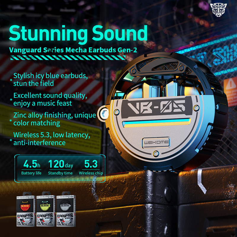 WEKOME VB05 Vanguard Series - Bezprzewodowe słuchawki Bluetooth V5.3 TWS z etui ładującym (Szary)