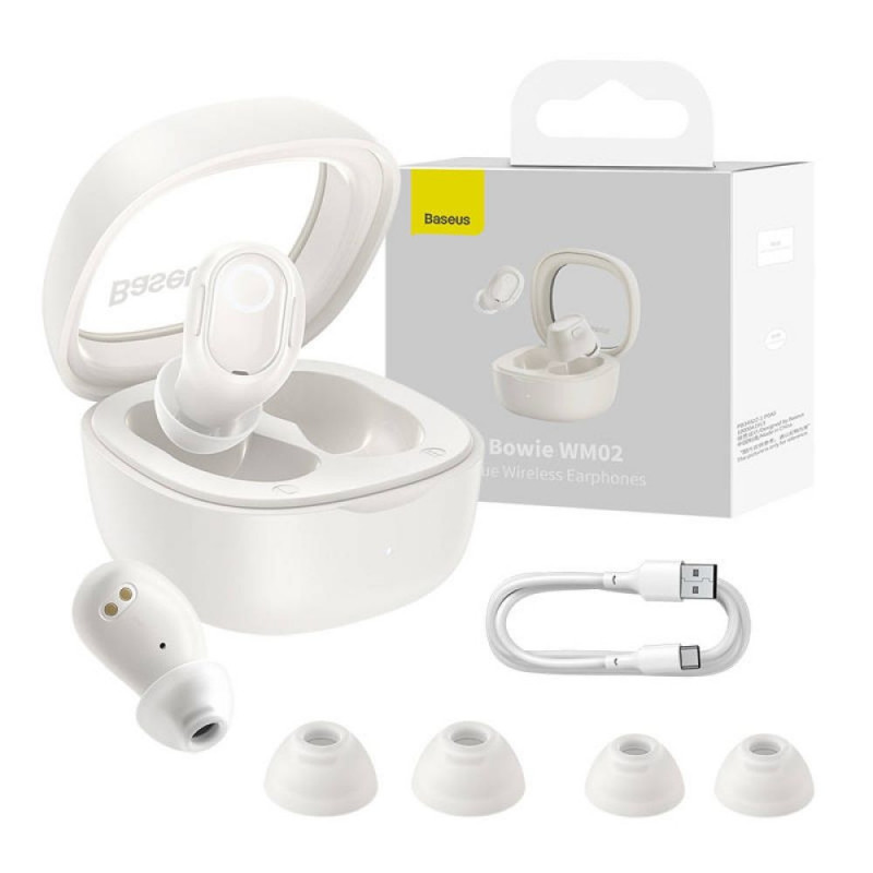 Wireless headphones Baseus Bowie WM02 TWS, Bluetooth 5.0 (white)