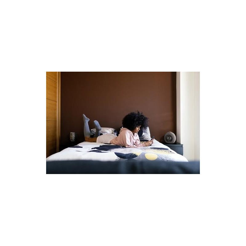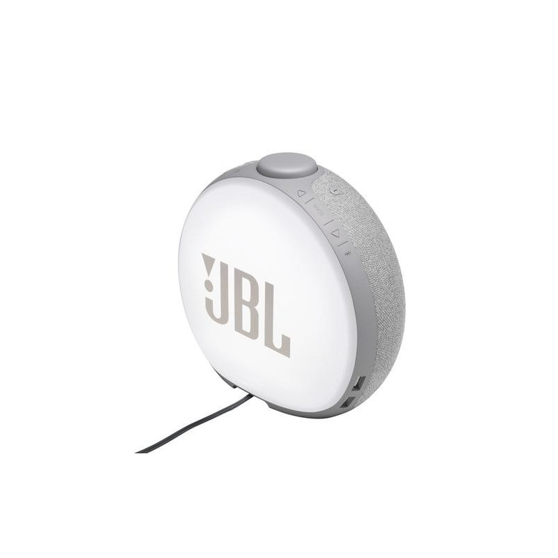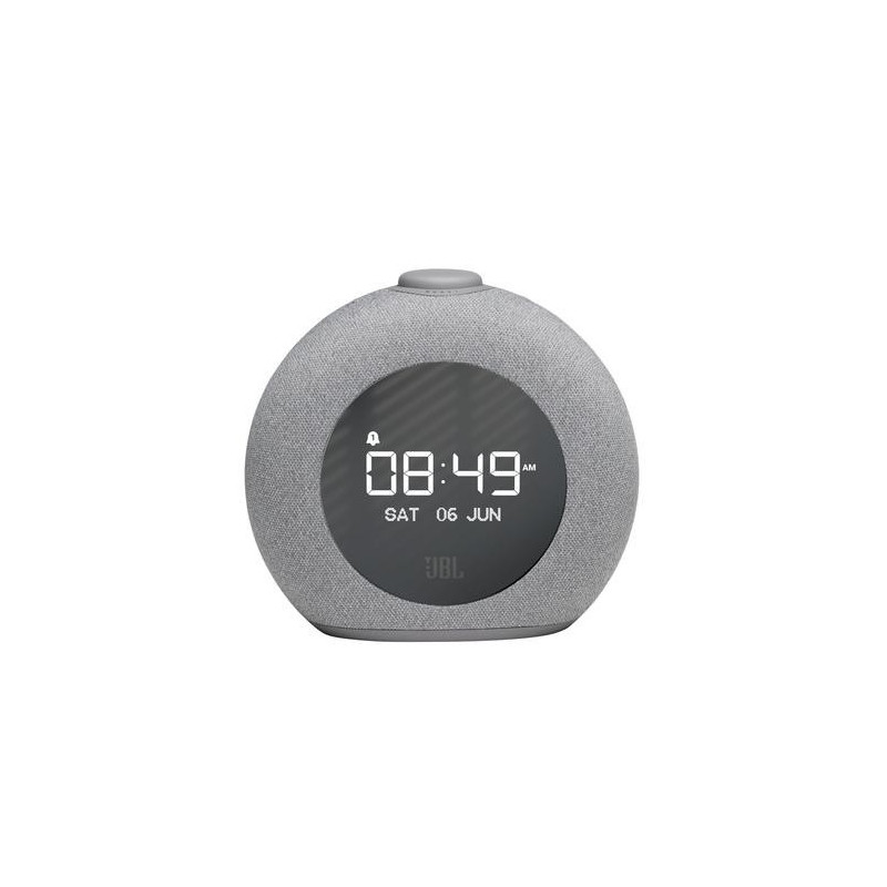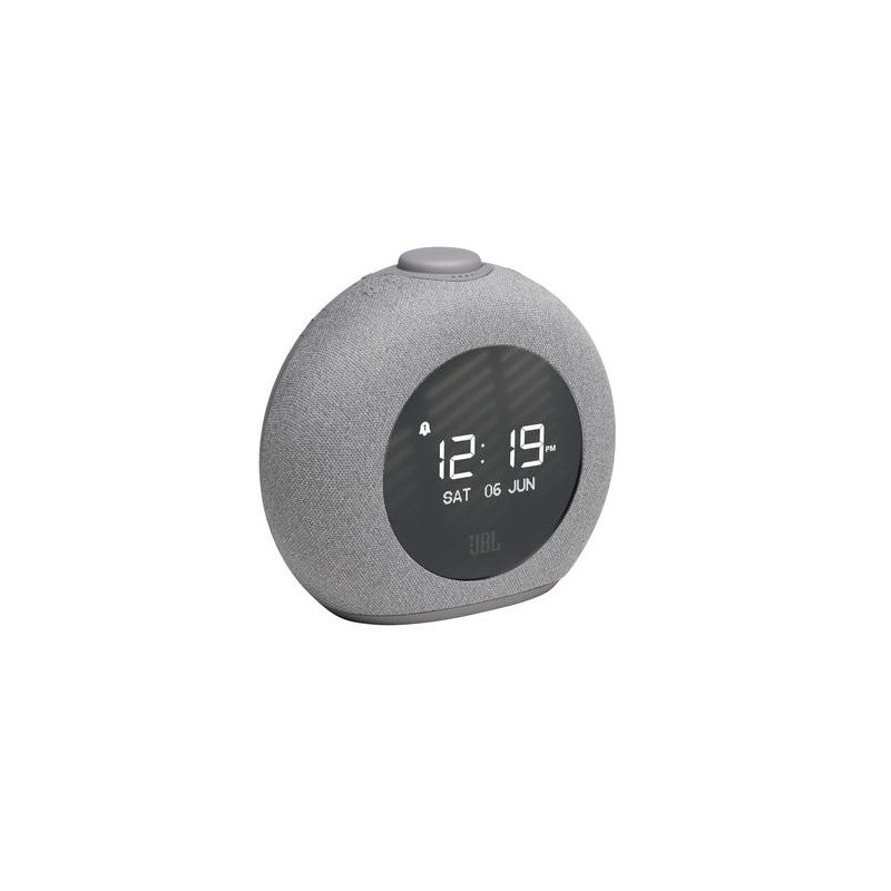 Wake up to JBL Pro Sound. With its signature round design, ambient LED light and FM radio, JBL Horizon 2 completes any bedroom. A large LCD display clearly shows the time, alarm settings and radio info, while the lifestyle fabric cover blends perfectly with any decor. Choose from a selection of alarm tones or one of your favorite FM radio stations. The easy-to-use rotary control knob lets you set and snooze alarms, adjust the volume or turn the ambient light on and off. Complete with two convenient USB ports for charging your devices, JBL Horizon 2 is the perfect bedside companion.<br><br>Customize your morning alarm<br>Personalize your alarm with multiple audio choices. Select your favorite radio station or one of built-in digital alarm tones. Set independent alarms for you and your partner.<br><br>Powerful JBL Pro Sound<br>Whether you're streaming music via Bluetooth or listening to your favorite radio station, fill your room with impressive JBL Pro Sound.<br><br>Tune in to your favorite radio stations<br>The JBL Horizon 2 clock radio can wake you up – or keep you company – with FM radio stations. Three convenient preset buttons take you directly to your favorite stations.<br><br>Stream all your music via Bluetooth<br>Simply connect via Bluetooth and play music from your favorite streaming services or personal playlists.<br><br>Ambient light<br>The ambient light makes it an ideal nightlight. It softly illuminates and enhances your bedroom. <br><br>Two USB ports to charge your devices<br>Charge your phone and tablet, or any two USB-powered devices, with convenient charging ports.<br><br>See everything at a glance on the large LCD display<br>Quickly check the time, date, alarm settings and radio info on the front LCD display. A built-in light sensor automatically adjusts the brightness to suit the lighting of the room.<br><br>Easy-to-use rotary control knob<br>The user-friendly rotary control knob has several convenient functions. Simply rotate the knob to quickly choose your wake time. You can also use it to snooze alarms, adjust the volume and turn ambient light on and off.JBL HORIZON 2 GREY. Radio type: Clock, Supported radio bands: DAB, DAB+, FM, FM band range: 87.5 - 108 MHz. RMS rated power: 4 W, Frequency range: 75 - 20000 Hz, Signal-to-Noise Ratio (SNR): 80 dB. Driver unit: 3.8 cm. Display type: LCD. Product colour: Grey, Volume control: Rotary, Audible alarm type: Radio/Sound/Buzzer