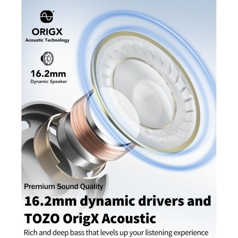 | TOZO OpenReal headphones Combine with dual microphones and noise reduction algorithm technology, which can restore the original sound, precisely capture your voice, cancel out ambient noise and deliver superior Clear Call. Therefore, you can achieve high-quality calls in any occasions. As well as equipped with true wireless Bluetooth 5.3 technology, so the connection is especially stable and brings the lower latency during data transmission. | |