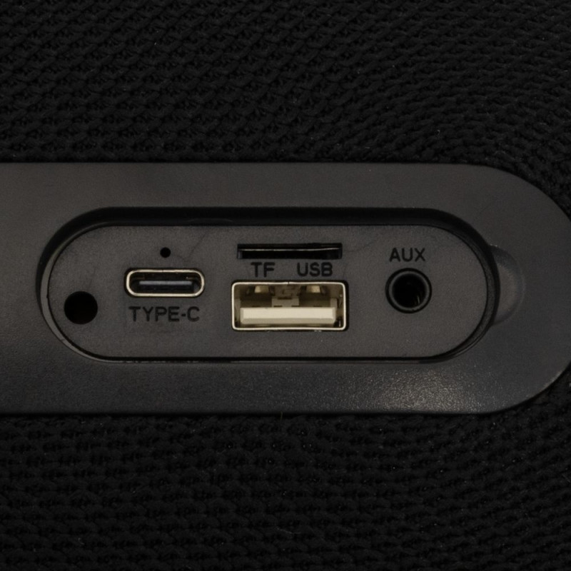 Kõlari tüüp: Bluetooth Sageduskarakteristik (Hz): 30Hz-18kHz Juhi suurus (mm): 66 Materjal: ABS plast, riie, silikoon Liides: käed-vabad, BT, FM, TF, TWS, AUX Vahemik (m): 10 Sisendtundlikkus: 45 dB +/- 2 dB Valgustus: jah Väljundvõimsus (mW): 2x5W RMS S/N suhe (dB): >80 Tööpinge (V): 3.7 Aku: 2400 mAh Kõneaeg / muusika aeg (h): 4 Kõlari mõõdud (mm): 175x135x135 Kaal (g): 825