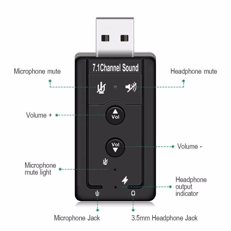 USB audio adapter with 3D stereo support and 7.1 virtual sound.