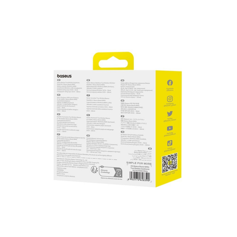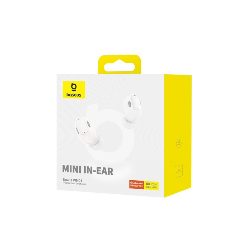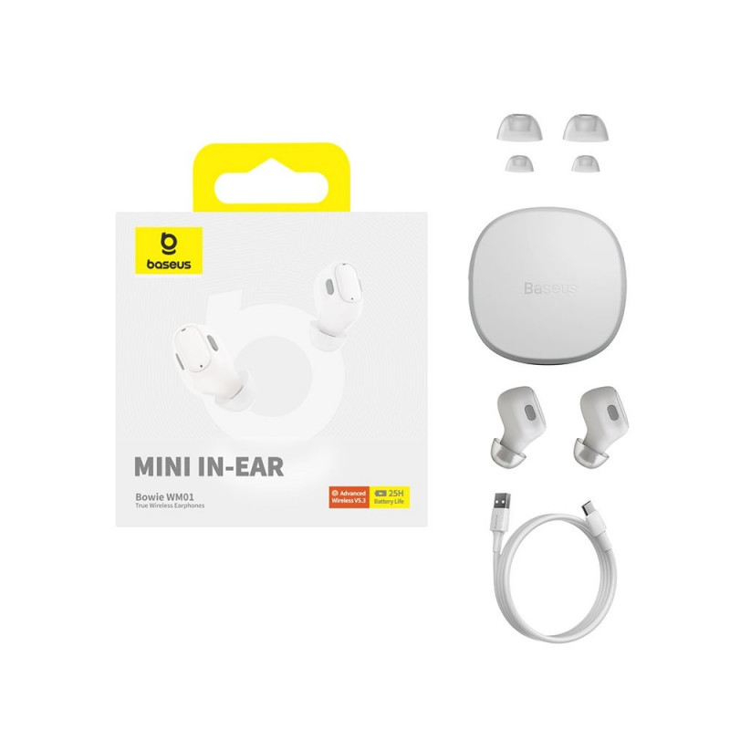 Tõelised juhtmevabad Bluetooth 5.3 kõrvaklapid WM01 koos laadimiskohvriga, valge