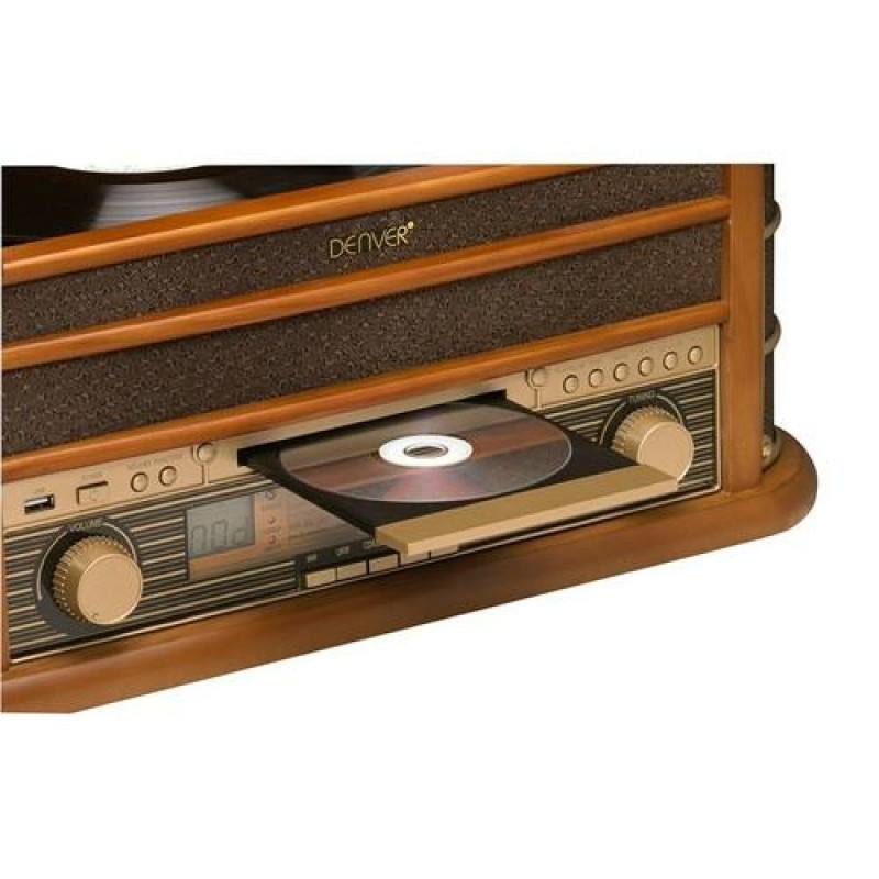 <br />Denver MCR-50. Product colour: Brown, Nominal speeds: 33 1/3,45,78 RPM, Supported radio bands: AM, FM. Display type: LCD. RMS rated power: 5 W. Power supply type: AC, AC adapter input voltage: 110 - 230 V, AC adapter frequency: 50/60 Hz. Weight: 8.5 kg, Product dimensions (WxHxD): 490 x 210 x 330 mm
