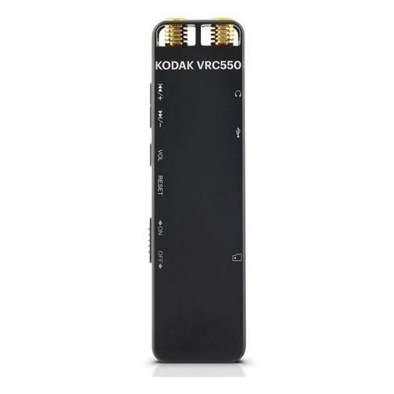 <br />Kodak VRC550. Maximum recording time: 725 h, Recording modes: High Quality (HQ), Long Play (LP), Standard Play (SP), Audio formats supported: AAC-LC, APE, FLAC, M4A, MP3, OGG, WAV, WMA. Display diagonal: 3.56 cm (1.4"). Interface: 3.5mm, USB connector type: USB Type-C. Battery technology: Lithium-Ion (Li-Ion), Battery capacity: 260 mAh, Battery voltage: 3.7 V. Media types supported: Internal memory & flash card, Compatible memory cards: MicroSD (TransFlash), Built-in memory capacity: 16 GB