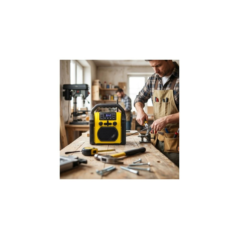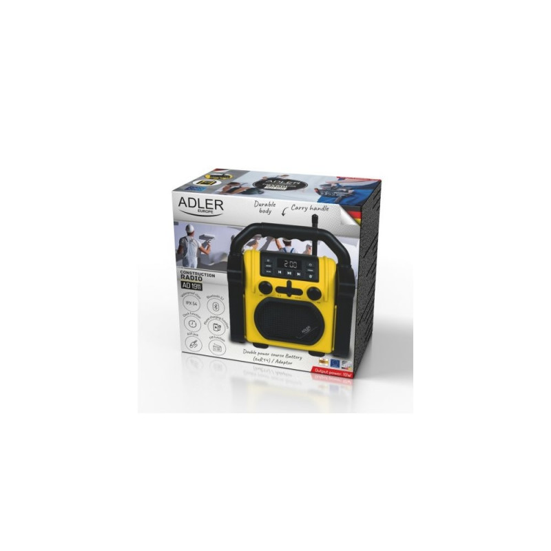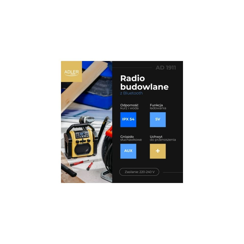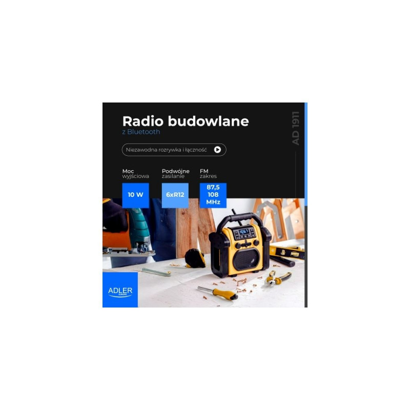 Adler AD 1911 ehitusraadio ühendab vastupidavuse ja kaasaegsed funktsioonid, nagu Bluetooth ja AUX-sisend, tagades usaldusväärse jõudluse rasketes tingimustes. Olenemata sellest, kas vajad muusikat ehitusplatsil või väljasõidul, on see raadio loodud pakkuma meelelahutust ja ühenduvust igas olukorras.
