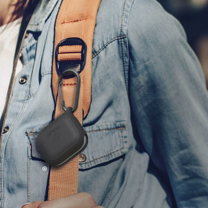 Eriline disain muudab AirPods-idele ligipääsu äärmiselt lihtsaks ning ümbrisega on kaasas eemaldatav karabiin, mille abil saate selle hõlpsasti kinnitada oma vööle, kotile või rahakotile.