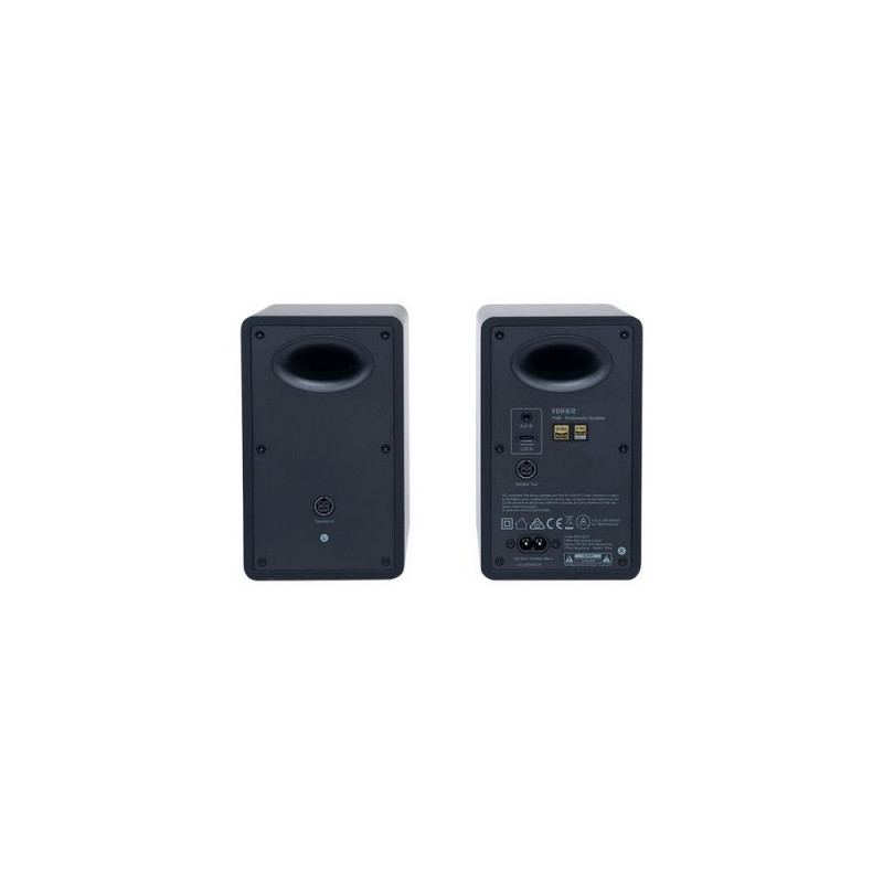 <b>Slim Yet Powerful, Simple Yet Elegant<br></b><br>The Edifier M60 is a compact desktop speaker designed for high-resolution audio reproduction. With its impressive power output and sleek design, it's the perfect addition to any desktop setup.<br><br><b>Compact Design:</b><br>Measuring 100mm (W) x 168mm (H) x 147mm (D), the M60 fits seamlessly into any space.<br><br><b>Powerful Output:</b><br>Boasting 66W RMS total output power, these speakers deliver robust sound despite their compact size.<br><br><b>Quality Sound:</b><br>Certified for both Hi-Res Audio and Hi-Res Audio Wireless, ensuring top-tier sound quality.<br><br><b>Elegant Outline:</b><br>The design complements any desktop style with its understated elegance.<br><br><b>Powerful Output</b><br><br>Each hand-crafted wooden cabinet houses a 1" silk dome tweeter and a 3" long-throw aluminum mid-low driver. Powered by a high-efficiency closed-loop Class-D audio amplifier from Texas Instruments, the speakers produce a total of 66W RMS, delivering powerful and clear sound.<br><br><b>High-Quality Audio Processing</b><br><br>Equipped with a high-performance analog audio front end and a Class-D amplifier from Texas Instruments, the M60 operates at 24-bit/96kHz, ensuring bit-perfect audio conversion. The built-in DSP (digital signal processor) provides precise two-way active crossover and effectively manages DRC (dynamic range control).<br><br><b>Versatile Inputs</b><br><br>The rear-mounted USB-C and AUX inputs allow for easy connection to your computer or turntable.<br><br><b>Bluetooth Connectivity</b><br><br>The Bluetooth V5.3 audio receiver supports the LDAC codec, offering a maximum transmission bitrate of up to 990 kbps. Stream high-resolution audio up to 24-bit/96kHz from Android devices running version 8.0 or later.<br><br><b>User-Friendly Control</b><br><br>The top-mounted touch panel features an automatic backlight that activates when your hand approaches and turns off on its own. With a simple touch and swipe, you can easily control the speaker.<br><br><b>Speaker Stands Included</b><br><br>The M60 includes a pair of exclusive aluminum speaker stands. These stands effectively minimize sound coloration caused by reflections from the desktop surface. The stands are designed with a 15-degree angle, ensuring the sound is directed precisely at ear level when placed on a desktop.<br><br><b>EDIFIER ConneX App<br></b><br>Download the EDlFlER ConneX mobile app to access additional functions, including:<br><br>- Playback control<br>- Sound effect switching and customization<br>- Touch panel backlight settings<br>- User manual and other settingsEdifier M60. Recommended usage: Home. Number of drivers: 4. Connectivity technology: Wired & Wireless. RMS rated power: 66 W, Frequency range: 58 - 40000 Hz. Product colour: Black