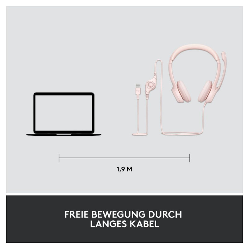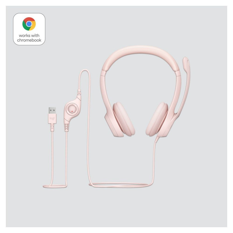 "Logitech H390 Headset on-ear wired USB-A rose"