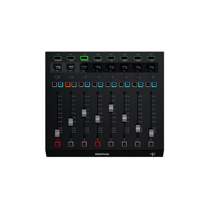The MIDIPLUS Up+ features 8 knobs, 32 buttons, and 8 faders with RGB backlighting. It is compatible with major DAW software and connects via USB with a power input of 12V.Toode on arhiivis, kuvatakse vaid informatiivsel eesmärgil.
