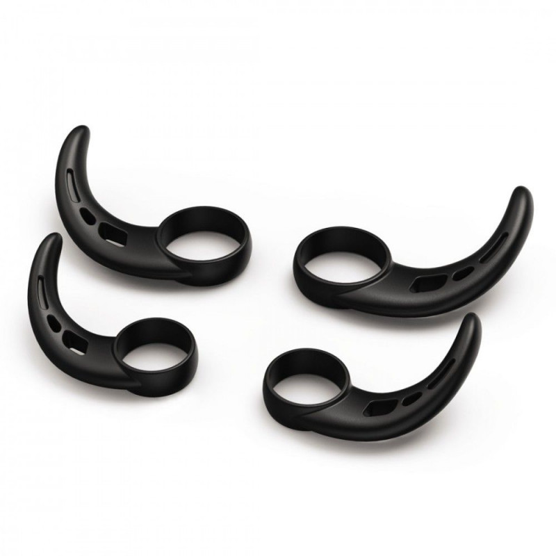 Komplektis on erinevas suuruses kõrvaotsikud ja silikoonist konksud. Tänu sellele püsivad kõrvaklapid kindlalt kõrvas ega kuku välja ka intensiivse liikumise korral.