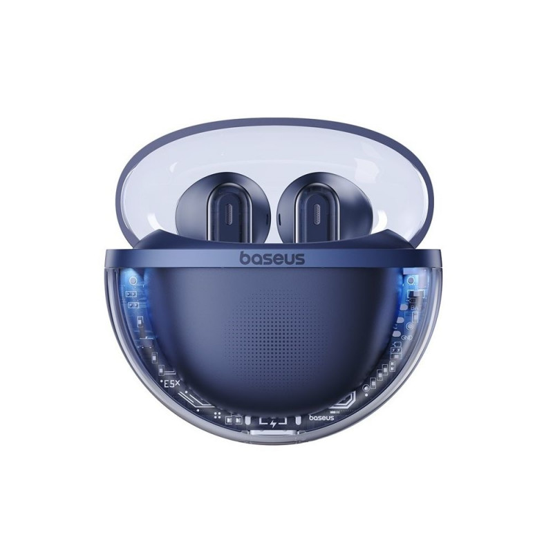 Baseus Bowie E5X True Wireless Stereo kõrvaklapid on sinise värvusega ja pakuvad kahte kandmisstiili: kõrvakonksuga ja kõrvasiseselt. Kõrvaklapid kasutavad True Wireless Stereo (TWS) tehnoloogiat ning neil on sisseehitatud mikrofon kõnede jaoks.
