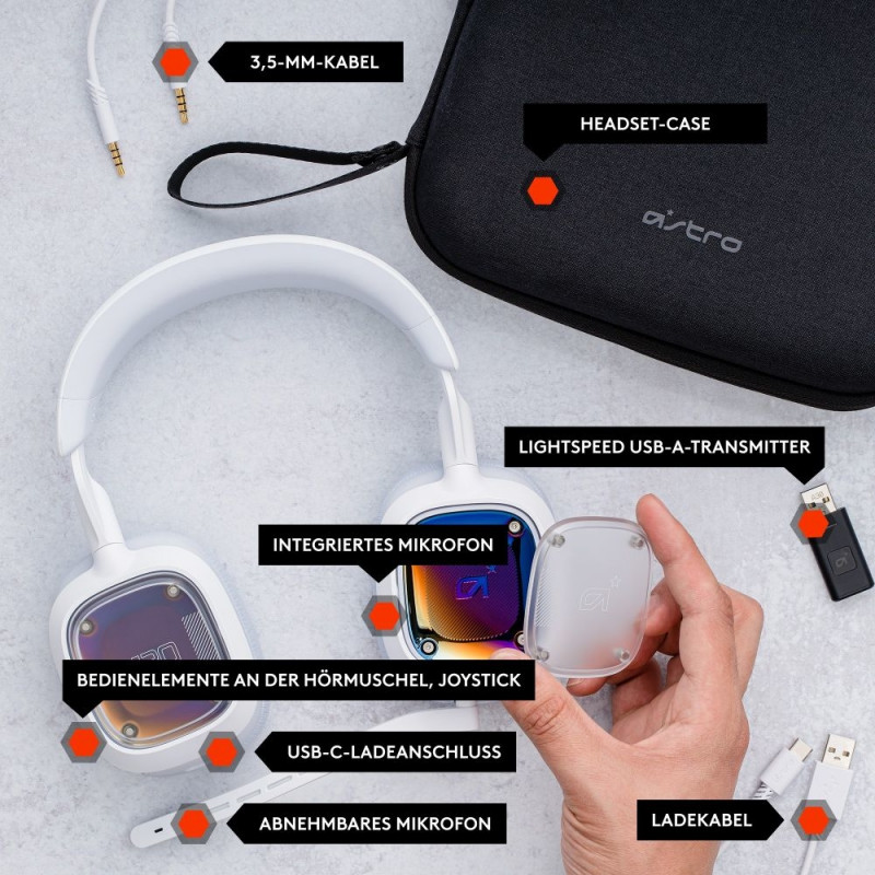 ASTRO Gaming A30. Tootetüüp: Kõrvaklapid. Ülekandetehnoloogia: Juhtmevaba, Bluetooth. Soovitatav kasutus: Mängimine. Kõrvaklappide sagedus: 20 - 20 000 Hz. Juhtmevaba ulatus: 15 m. Kaal: 342 g. Toote värv: Valge.