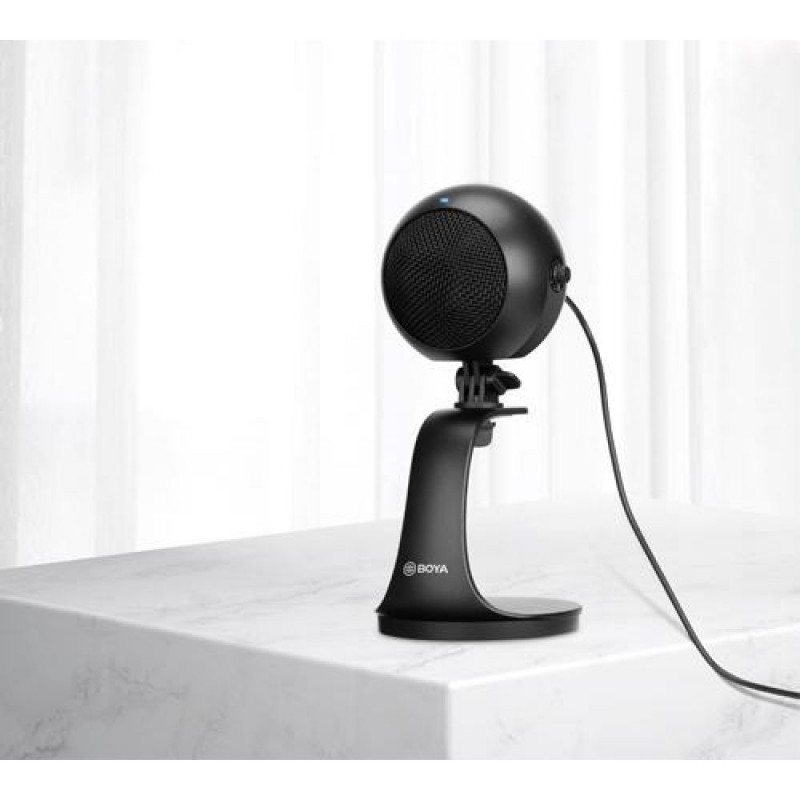 BOYA BY-PM300 is a desktop USB microphone,compatible with most Android phones and Windows/Mac computers,With excellent cardioid pickup pattern,BY-PM300 is focused on picking up sound in front of the microphone and effectively reduces unwanted background noise,it is ideal for home-studio recording, podcasting,vocal performance, and more. BY-PM300 features gain control,headphone volume control and mute function,The 3.5mm headphone jack enables real-time monitoring,Detachable desktop stand allows you to adjust the microphone at the desired angle.BOYA BY-PM300. Type: PC microphone, Microphone sensitivity: -45 dB, Microphone frequency: 20 - 20000 Hz. Connectivity technology: Wired, Device interface: USB/3.5 mm. Product colour: Black. Power source: USB. Width: 249.6 mm, Depth: 114.9 mm, Height: 118.8 mm