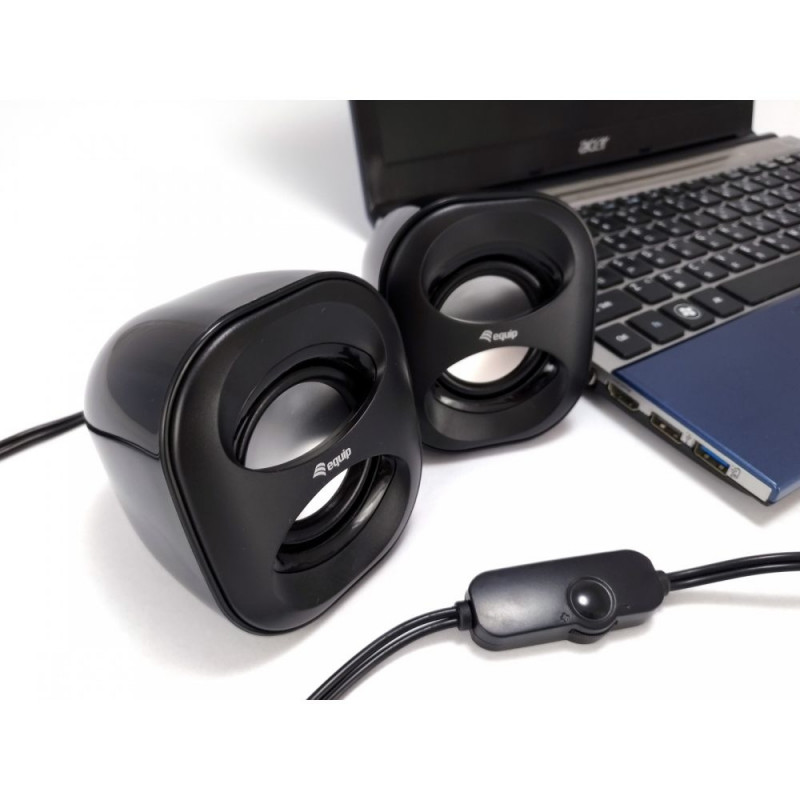 Equip Mini-USB kõlarid. Soovitatav kasutus: arvuti. Helikanalid: 2.0 kanalit. Ülekandetehnoloogia: juhtmega. RMS-võimsus: 3 W, sagedusvahemik: 90–20 Hz, impedants: 40 oomi, tundlikkus: 65 dB. Kaugjuhtimispult, toote värvus: must