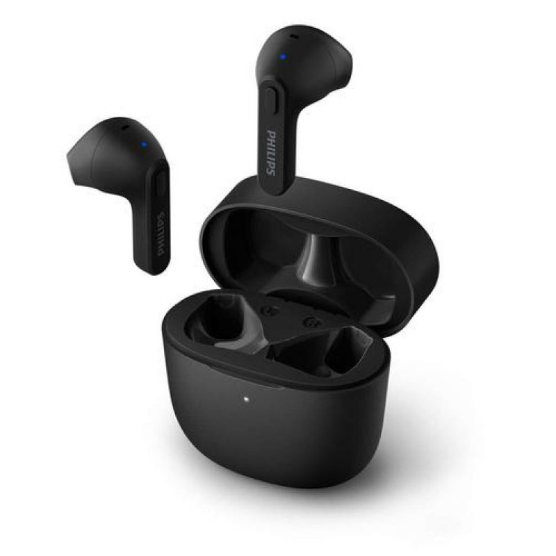 <b>Super-slim case. Comfortable fit.</b><br><br>These splash and sweat-resistant true wireless headphones go where you go! The charging case fits in the pocket of your slim-fit jeans. The earbuds sit in your outer ear-perfect if you don’t like the feeling of ear tips in your ear canal.<br><br><b>IPX4 splash and sweat resistant</b><br><br>With an IPX4 rating and powerful 12 mm drivers, these headphones let you enjoy great sound in any weather. Fully splash resistant, they won't mind a little sweat and you don't need to worry about getting caught in the rain.<br><br><b>Make calls using a single earbud. Mono mode</b><br><br>Taking a lot of calls? You can double your talk time by using one earbud while the other one charges. The mic is automatically assigned to the earbud you're using, and you simply swap over when your current earbud is running low on battery.<br><br><b>Super-small USB-C charging case. 12 hours extra play time</b><br><br>With a charging case this small, you get more music anywhere! A single charge of these true wireless headphones gives you 6 hours play time, and a fully charged case adds another 12 hours. For a quick boost, pop your headphones in the case for 15 minutes to get an extra hour.<br><br><b>Integrated controls. Built-in mic. Easy pairing</b><br><br>Controls on the earbuds let you pause your playlist, take calls, and wake your phone's voice assistant. The headphones are ready to pair in an instant. Once paired, they reconnect with your phone as soon as you open the charging case.<br><br><b>Secure comfortable fit. Earbuds without ear tips</b><br><br>You can rock your tunes in real comfort thanks to the snug, lightweight design. With no ear tips, you won't feel anything in your ear canal-and there's no sensation of pressure. The 'hockey stick' form factor keeps each earbud secure.Philips 2000 series TAT2236BK. Product type: Headset. Connectivity technology: Wireless, Bluetooth. Recommended usage: Calls/Music. Headphone frequency: 20 - 20000 Hz. Wireless range: 10 m. Weight: 36 g. Product colour: Black