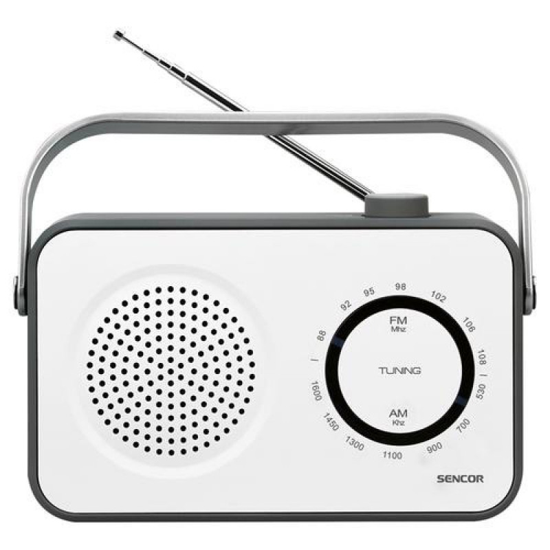 Output Power: 1 W RMS<br>Speaker Size: 3" Speaker<br>High Sensitivity and Excellent Sound Performance<br>AUX-OUT Jack 3.5 mm ( Headphones )<br>FM Receiver Frequency: 87.5 - 108 MHz<br>AM Receiver Frequency: 530 - 1600 kHz<br>Analog Tuning<br>Telescopic FM Antenna<br>Rubberized Surface<br>Carrying Handle<br>Power: AC 230 V / 50 Hz or 3 x 1.5 V Battery Type C / LR14<br>( Not Included )<br>Consumption: 4 W<br>Dimensions: ( w / h / d ) 208 x 164 x 63 mm<br>Weight: 0,63 kgSencor SRD 2100 W. Width: 208 mm, Depth: 63 mm, Height: 164 mm. AC input voltage: 230 V, AC input frequency: 50 Hz, Power consumption (typical): 4 W