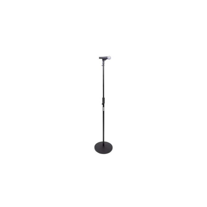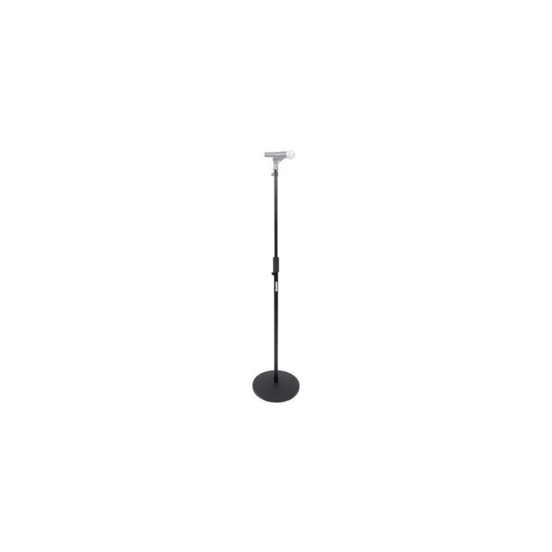 The Shure SH-RBMICSTAND10 is a standard round base mic stand that is at home in any live performance or recording environment. Constructed with black powder-coated steel, this mic stand is built to be both durable and aesthetically pleasing in any stage or studio setup. The 10” weighted base ensures stability and is enhanced with a vibration-absorbing rubber gasket for isolation from unwanted noise and potential signal disruptions. The ergonomic twist clutch allows you to adjust and secure the height from 36 to 64 inches with ease. The integrated cable management clips offer a clean setup, and it is compatible with both US and Euro mic clips.<br><br>Gator Frameworks SH-RBMICSTAND10. Product type: Straight microphone stand, Base type: Round base, Product colour: Black. Width: 305 mm, Depth: 305 mm, Height (min): 88.9 cm
