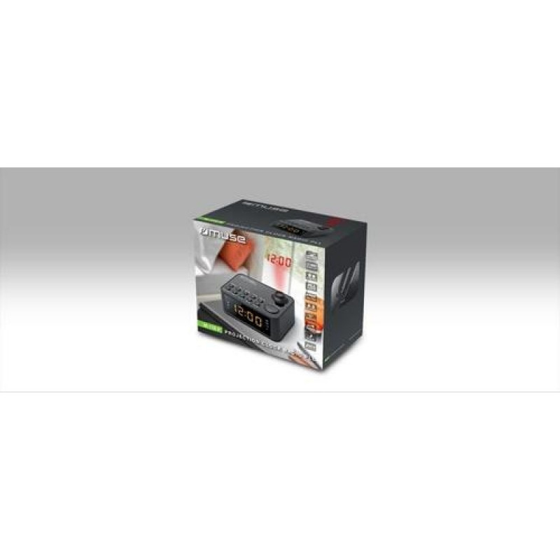 <b>Clock radio with projection clock</b><br>- 0.9” Large Amber display;<br>- Dual Alarm;<br>- Time projection;<br>- 2 band PLL radio FM/MW.<br><br><b>Connections</b><br>- Aux in jack.<br><br><b>Radio</b><br>- Digital tuner MW / FM.<br><br><b>Clock</b><br>- Snooze;<br>- Clock display : 24 hour;<br>- Wake up by radio or buzzer;<br>- Nap.<br><br><b>Display</b><br>- Display : 0.9 inch Amber LED;<br>- Dimmer.Muse M-178P. Radio type: Clock, Tuner type: Digital, Supported radio bands: FM, MW. Display type: LED, Display diagonal: 2.29 cm (0.9"), Backlight colour: Amber. Product colour: Black, Projection function: Time, Coloration: Monochromatic. Compatible battery sizes: AAA, Battery voltage: 1.5 V. Power source: AC, AC input voltage: 230 V, AC input frequency: 50 Hz