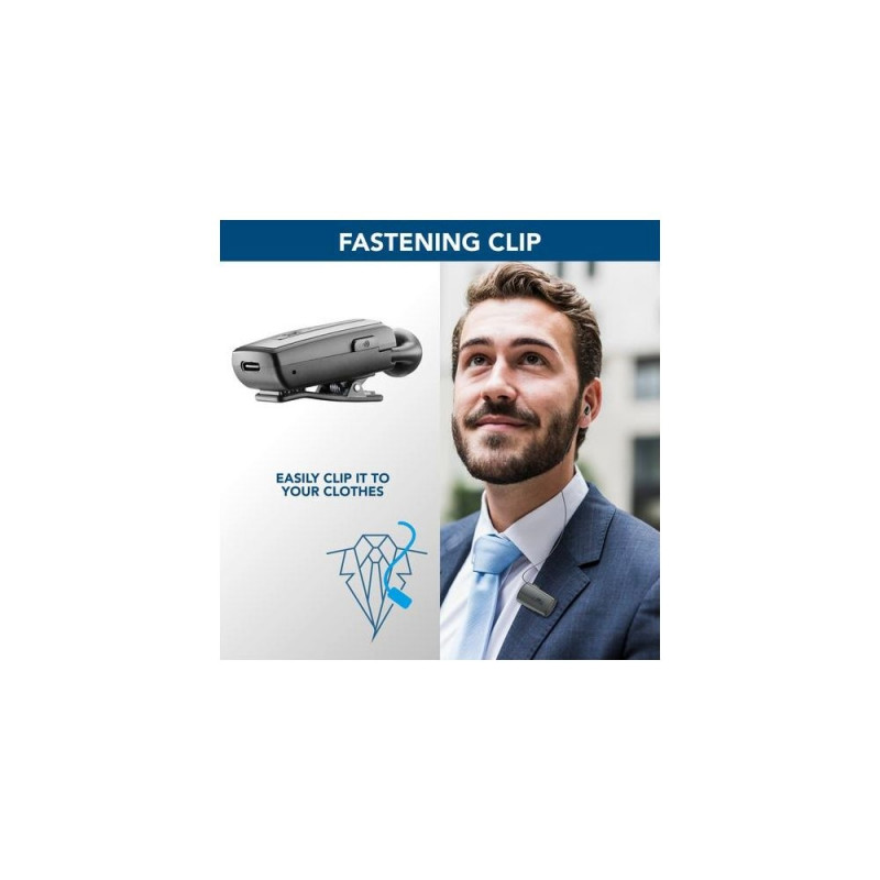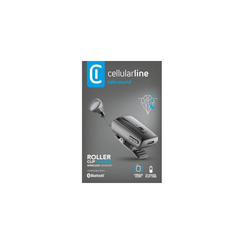 ROLLER CLIP CLASSIC is the mono Bluetooth® headset with an eye-catching design and a retractable cable that lets you easily put the headset back into place. Thanks to the attachment clip, you will not have to worry about losing the headset because it will always be attached to your t-shirt to go with you wherever you are. It is equipped with MULTIPOINT technology which lets you connect the headset to two devices at the same time. Finally, with the VIBRATE ALERT function, you will always be ready to answer your calls.Cellularline Roller Clip Classic Capsule-shaped mono Bluetooth® headset with retractable cable and attachment clip. Product type: Headset. Connectivity technology: Wireless, Bluetooth. Recommended usage: Calls/Music, Cable length: 0.15 m. Weight: 98 g. Product colour: Black