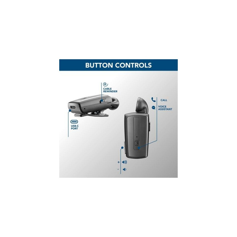 Cellularline Roller Clip Classic Capsule-shaped mono Bluetooth® headset with retractable cable and a
