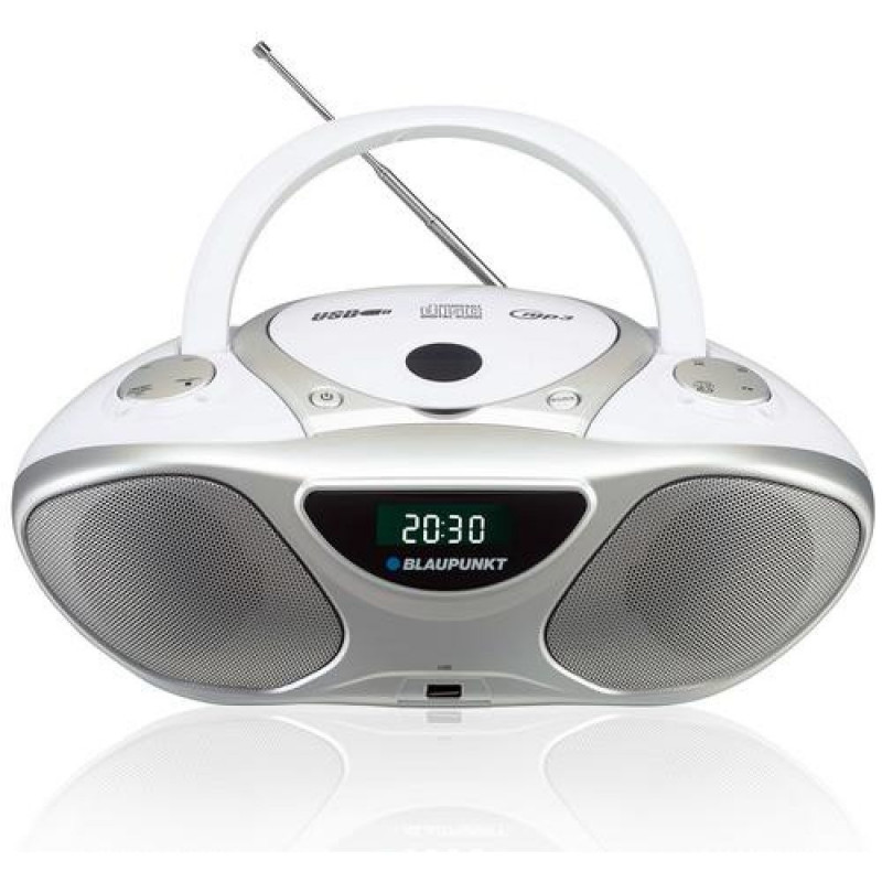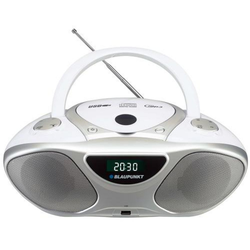 <b>Take the sounds of your favourite songs anywhere you like!</b><br><br>Nowadays, a portable radio player is a fixed element in teenagers’ rooms, beauty salons and teaching rooms. It is present in all the places where a subtle musical background is required, in a room where a small social gathering is being prepared, or where listening to CDs with teaching materials is required. Great functionality and simplicity of operation allow these radio players to be used by both children and adults.<br><br>The Boombox BB14WH from Blaupunkt is a model which has been equipped with a CD player, with the ability to play MP3 files. This gives the users the possibility to listen to their favourite music CD’s or popular audiobooks, with a large choice of books to listen to.<br><br>The device also has an FM tuner, which allows the users to save up to 40 radio stations in its memory, and the tuning process is very easy and takes little time. This function shall surely be appreciated by people who are in the habit of listening to news on their favourite radio station every day.<br><br>The BB14WH also has a USB port to connect to any external carriers which save MP3 files. The player will automatically decode and play the songs saved on a portable USB memory carrier, and will allow you to enjoy your favourite songs during all social gatherings. Additionally, an AUX port is located in the front part of the housing, thanks to which it is possible to connect to other devices which have an analogue sound output. All that is needed to enjoy a better sound quality is a simple connection.<br><br>This portable radio player can be both mains-powered and with 6 replaceable R14 batteries. Thanks to this, the device can serve the function of a stationary player or a portable entertainment centre.<br><br>The convenience of operation is complemented by the LCD display, which shows the radio frequency of the chosen radio station, the track number, and the current time.Blaupunkt BB14WH. RMS rated power: 2 W. Device type: CD recorder, Product colour: Silver, White. Display type: LCD. Power source type: AC, Battery, AC adapter input voltage: 230 V, AC adapter frequency: 50 Hz. Weight: 1.55 kg, Depth: 230 mm, Height: 120 mm