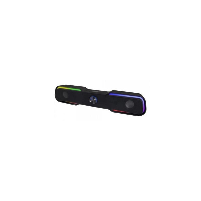 High-quality stereo speaker with LED RAINBOW lighting for notebooks and desktops. It provide clear and natural sound quality. They work well with all computer units with speaker and USB outputs. It is equipped with built-in volume control. High-quality materials used for their manufacture protect against static electricity and electromagnetic interference.Esperanza Apala. RMS rated power: 6 W. Soundbar speaker RMS power: 6 W, Impedance: 3 Ω. Product colour: Black, Recommended usage: Laptop / Netbook, Volume control: Rotary. Connectivity technology: Wired. Width: 440 mm, Depth: 83 mm, Height: 88 mm