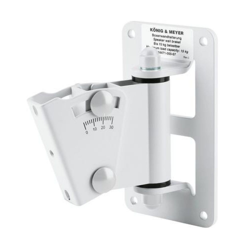 Multi-purpose wall mount for speakers. The mounted speaker can be swiveled to the sides and tilted up to 30°. Easy mounting by convenient hooking in and screw locking.König & Meyer 24471 Speaker wall mount. Placement: Wall, Maximum weight capacity: 1Osta kohe, viimased eksemplarid laos!