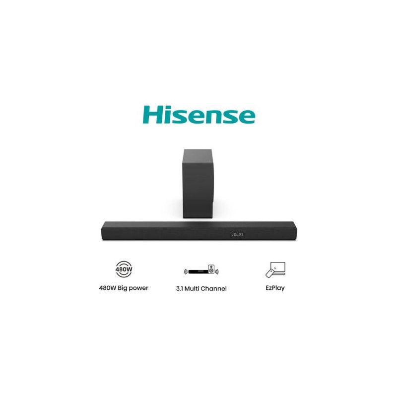 the Hisense HS3100 certainly packs a punch, with its 3.1 channel 480W output, this will elevate all that you watch in to an immersive cinematic experience. Get those deep bass notes, thanks to the 6.5" wireless subwoofer. plenty of preset EQ modes and hisense TV mode this is a great home cinema systemHisense HS3100. Audio output channels: 3.1 channels, RMS rated power: 480 W, Audio decoders: DTS Virtual:X, Dolby Digital. Soundbar speaker RMS power: 180 W. Subwoofer type: Active subwoofer, Subwoofer connectivity: Wireless, Subwoofer RMS power: 180 W. Product colour: Black. Connectivity technology: Wired & Wireless