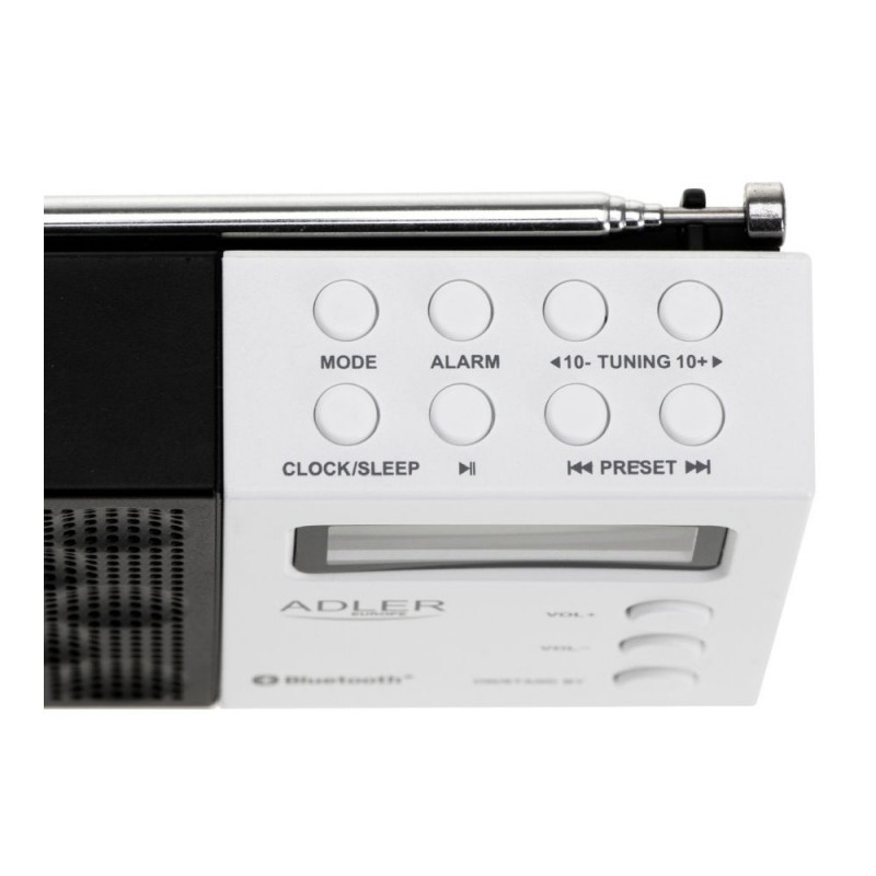 | Other features | AD 1908 PLL AM/FM Digital Radio Advanced PLL tuning Wide FM range: 87.5-108 MHz Bluetooth 5.0 connectivity USB/SD playback Multiple preset stations: Save up to 20 FM stations Clear LCD display Telescopic antenna Functions: clock, alarm, sno |