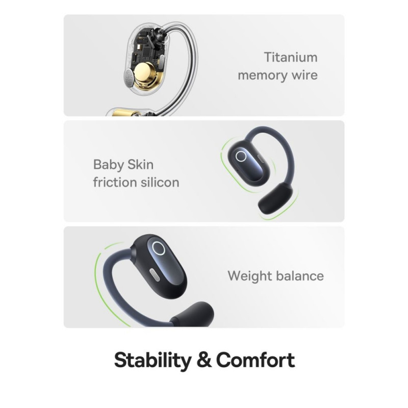 Baseus Eli Sport 1 avatud disainiga juhtmevabad kõrvaklapid pakuvad maksimaalset mugavust ja ohutust sportimise ajal, kuna ümbritsevad helid jäävad kuuldavaks. Võimsad 16,2 mm draiverid ja ENC-mikrofonid tagavad selge heli ja probleemivabad kõned – isegi tuule või liikumise korral. Eemaldatava kaelaümbrise, IPX4 veekindluse ja kuni 30-tunnise aku kestvuse tõttu sobivad need ideaalselt aktiivsetele kasutajatele.