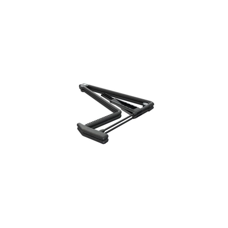 The completely revised world-renowned classic stand is presented in a new look. The instrument is particularly well cared for thanks to the elaborate new rubber structure. With the new innovative adjustable cross bar, guitars of different sizes or even other instruments such as a cello or French horn can be placed on the stand. For storage and transport the stand folds flat. In addition, we provide a practical transport lock. An additional feature includes integrated guitar pick holders. Heli 2 is available in black, red, blue and cork.König & Meyer 17580