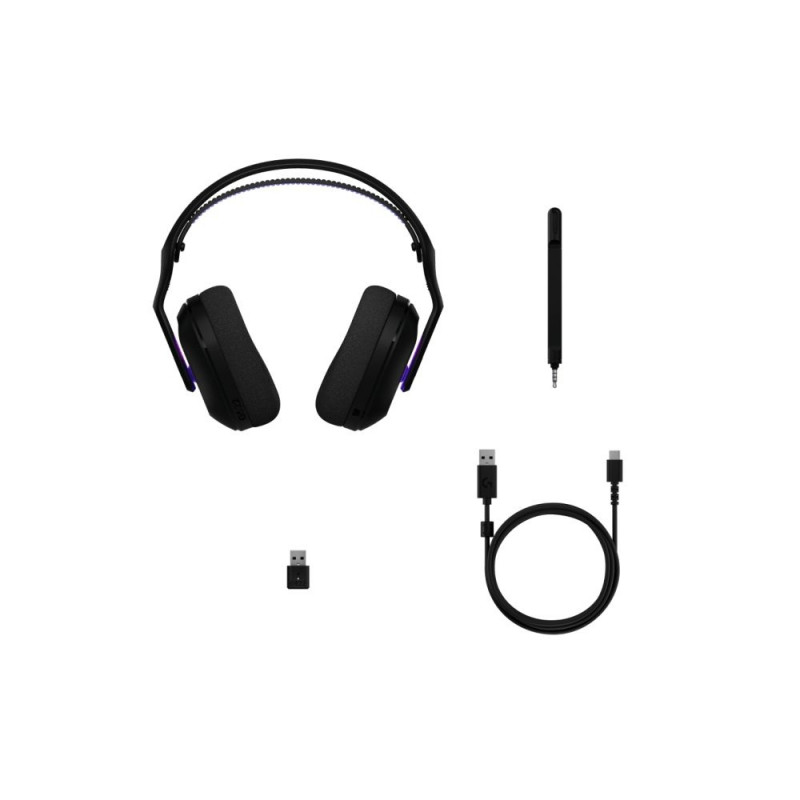 | Product Highlights | Black Gaming Head-band Headset, Wireless USB connectivity Bluetooth 5.3 RF connectivity 30 m, Circumaural 20 - 20000 Hz 97 dB, Microphone type: Boom, Built-in battery 1500 mAh |