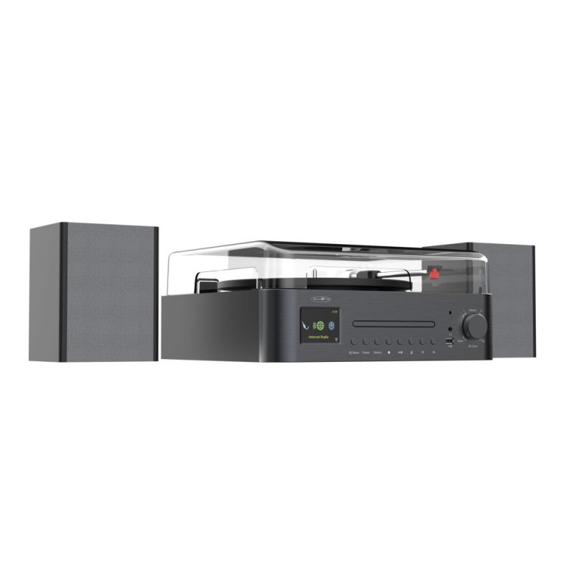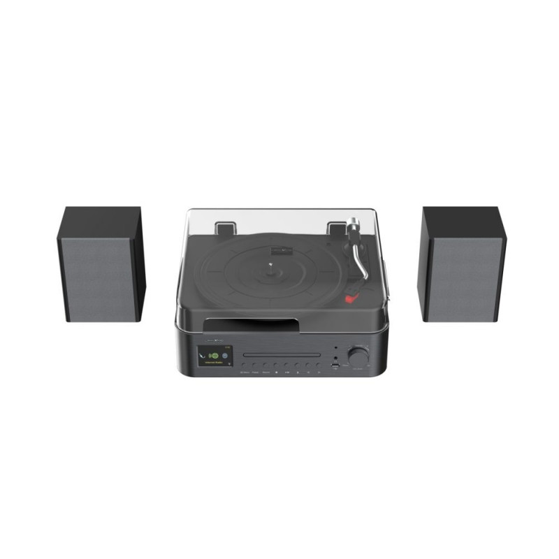Tänu WLAN-internetiraadiole saad kuulata raadiojaamu üle kogu maailma. Poolautomaatne plaatmängija kolme kiirusega (33/45/78 p/min) tagab autentse kuulamiskogemuse. Komplekti kuuluvad põhiseade, kaks kõlarit, kaugjuhtimispult (patareid ei kuulu komplekti), toitekaabel ja kasutusjuhend.