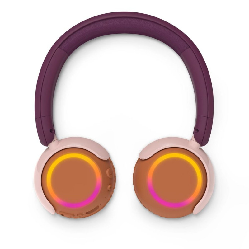 Värviliste LED-tuledega kõrvapatjadel ja meelelahutusliku juhtmevaba heli jagamise funktsiooniga kõrvaklapid on spetsiaalselt loodud laste rõõmustamiseks. Helitugevus on piiratud noorte kõrvade jaoks ning spetsiaalne reisirežiim võimaldab lastel kuulata turvaliselt ka mürarikkas keskkonnas.