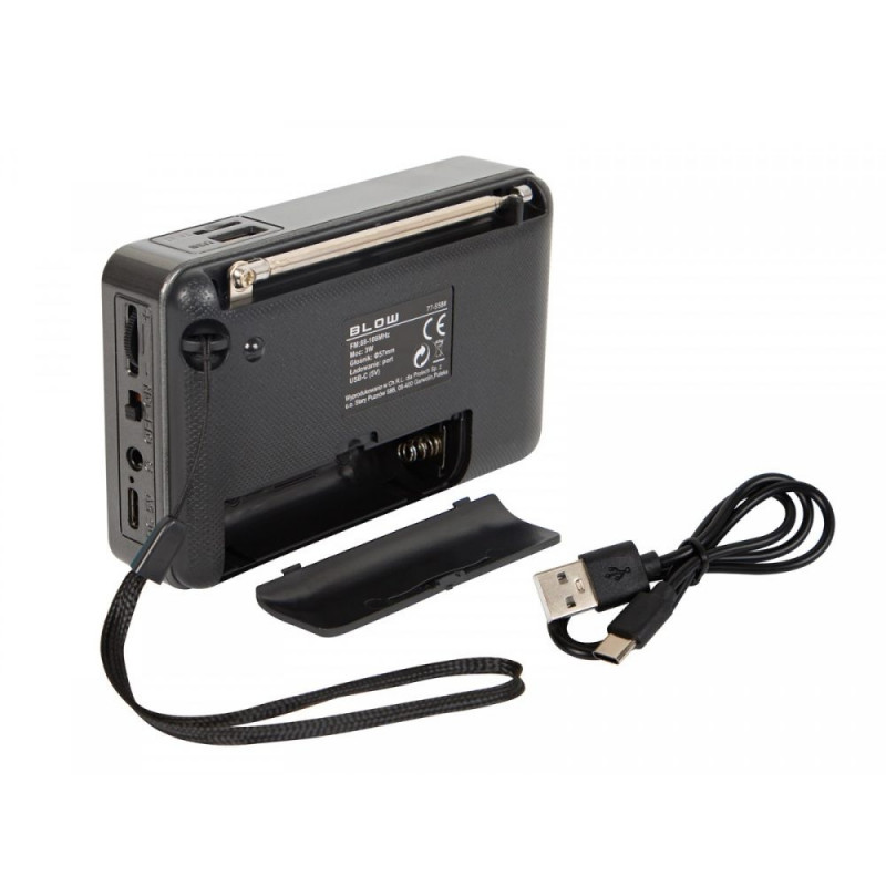 Kompaktne ja mitmekülgne BLOW RA18 on kaasaskantav FM-raadio, millel on Bluetooth-funktsioon. See on ideaalne kaaslane reisile, koju, kontorisse, ehitusplatsile või töökotta. Seadet saab kasutada ka juhtmevaba Bluetooth-kõlarina, võimaldades muusikat esitada telefonist, sülearvutist või tahvelarvutist. Toetatud on MP3-failid nii microSD-kaardilt kui ka USB-mälupulgalt. Sisseehitatud teleskoopantenn tagab selge ja stabiilse raadiovastuvõtu. Raadiol on 800mAh aku, mis võimaldab mitu tundi kasutamist ilma laadimata. Laadimine toimub mugavalt USB-C kaabli kaudu.