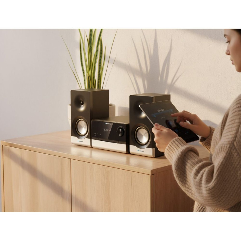 Kompaktne mikro-audiosüsteem võimsusega 100 W RMS (2 × 50 W) ja maksimaalse väljundvõimsusega 300 W pakub kvaliteetset heli igas interjööris. Sellel on CD-mängija (MP3/WMA), FM PLL-raadio RDS-i ja 40 eelsalvestatud jaamaga, USB-port ja Bluetooth-ühendus juhtmevabaks muusika voogedastuseks. HDMI ARC, optilise sisendi ja AUX-sisendiga saab seda hõlpsalt teleri ja teiste seadmetega ühendada. Süsteemil on ekvalaiser režiimidega (muusika, mäng, uudised, film), bassi ja kõrgete helide reguleerimine, helitugevuse funktsioon ja isegi äratuskellaga kell. Selge LED-ekraan ja kaugjuhtimispult muudavad kasutamise lihtsaks ja mugavaks.