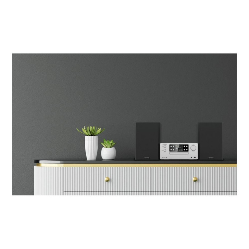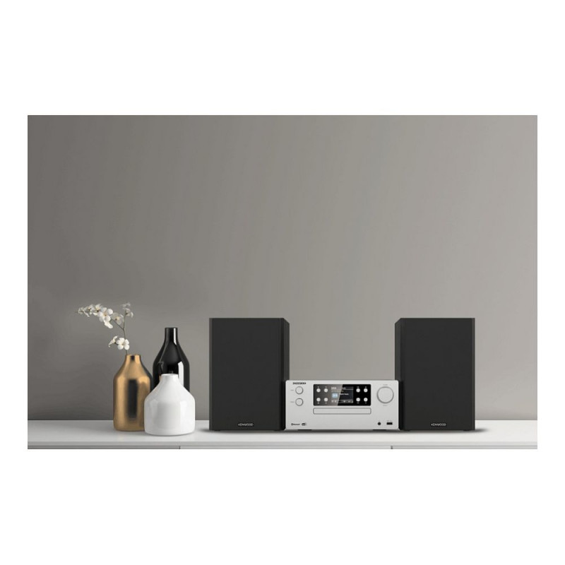 Kenwood Electronics M-925DAB-S. Tüüp: Kodune audio mikrosüsteem, Toote värv: must, hõbe. RMS-võimsus: 50 W, Kõlaritüüp: 2-ribaline, Kesksageduse draiveri läbimõõt: 13 cm. Toetatud sagedusalad: DAB+, FM, RDS: PTY, Digitaalne FM-raadio: 87,5–108 MHz. Ekraani tüüp: TFT. Kõrvaklappide ühendus: 3,5 mm, Toiteallikas: vahelduvvool (AC)